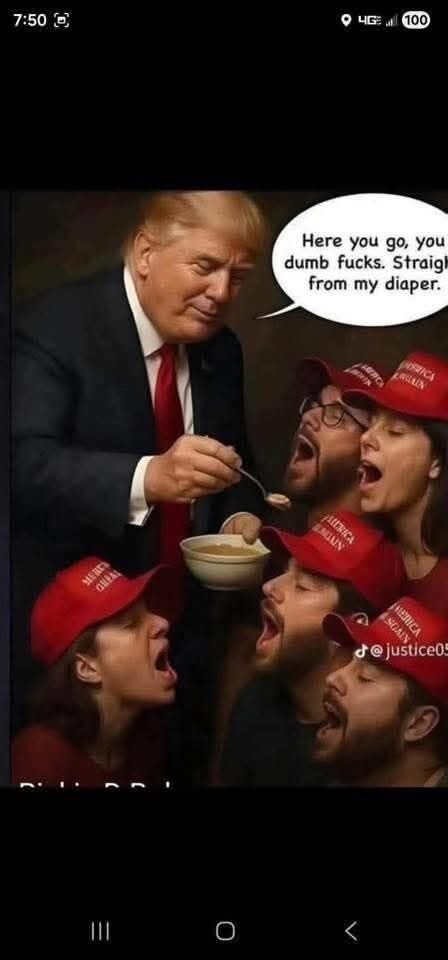 The dump’s rant regarding this picture is priceless and should serve as an insult to those who beg to kiss his ass. I mean can you imagine Cleatus J. Dingleberry thinking “…this is kinda offensive here, Donny crossed a line…” then the dump says “…the fake news blah blah, I’m a doctor who heals people, blah blah…” and Cleatus then thinks “…wow I feel bad now Don was just trying to dress like a doctor…” when he should be thinking “…I feel insulted, the dump must really think I am an idiot, he was clearly mocking Jesus…fuck him that diaper wearing pedo..!” Magats are a bunch…