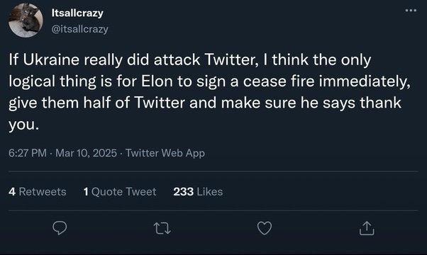 Coss Posted November 27, 2022 Author Report Posted November 27, 2022 Eion Musk personally called CEOs of companies that stopped advertising on Twitter to complain A number of leading media buyers and advertising agencies say that almost all the major brands they act for have stopped ad spending on Twitter, ... - Whinge, moan, complain, grumble, mumble, cry, complain, complain, complain - https://www.businessinsider.com/musk-personally-called-ceo-companies-to-complain-ad-spending-twitter-2022-11 Turns out there was huge money in Twitter advertising. Now Mr Musk is crying because the money is drying up. The equation goes like this from Musk's point of view :: "I'm Rich" = "you give me money" In reality it's :: IF("Twitter is palatable to advertisers", "money coming", "money not coming")